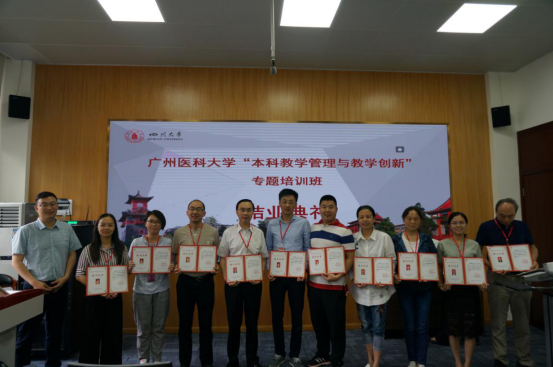 结业典礼上,全国干部教育培训四川大学基地教学管理部田昭主任为本次培训班学员颁结业证书,培训班完满结束。学员们在培训后纷纷表示,培训班形式创新、内容丰富,通过这次培训大家拓展了的视野,更新了教育理念、管理理念,教学效果卓著,并希望在将来日常的教学工作和教学管理工作中学以致用,助力广州医科大学高水平大学建设。