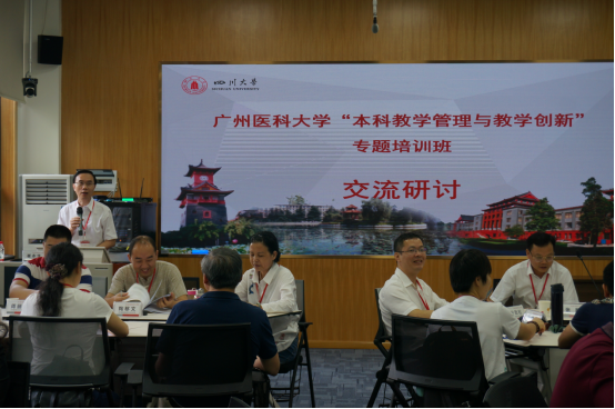 28日上午举行了“本科教学管理与教学创新”专题培训班交流研讨和结业典礼。交流研讨会由本次培训班副团长第二临床学院崔永生副院长主持,培训学员分组针对“如何提高教师教学积极性”和本次培训班学习经验进行总结和交流,并派代表进行汇报分享。汇报结束后,张慧群老师和崔永生副院长进行总结,崔院长指出我校管理人员应及时更新理念,将自身的经验与新理念相结合,并在日常的教学中进行延伸。张慧群老师表示本次培训班形式多样,内容丰富,四川大学精心安排,提供了坚实的后勤保障。她还指出通过本次培训希望老师们能统一思想,提高认识,将四川大学的优秀管理经验和广州医科大学的现实结合,协力推动教学改革。