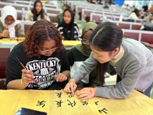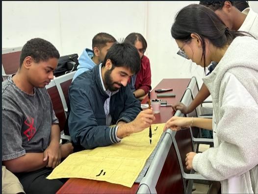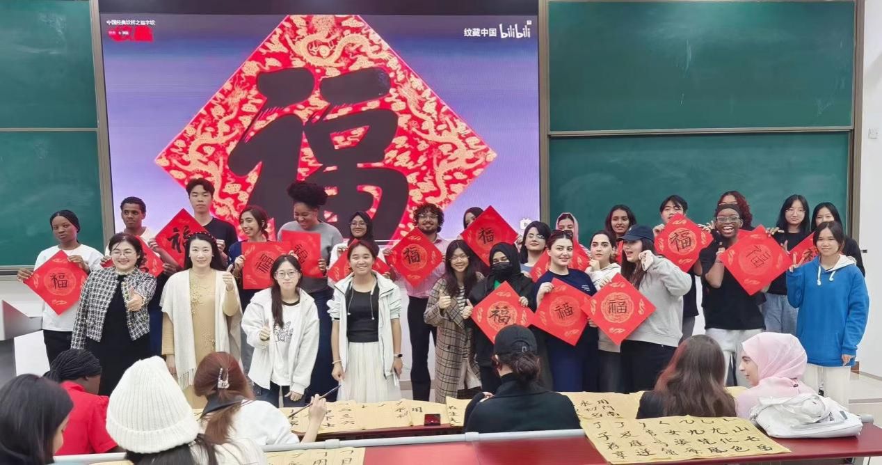 2025年11月25日,在《中国文化概况》的课堂上,2025级国际留学生迎来了一堂别开生面的中国文化实践课。本次授课以“书法与剪纸”为主题,由外语部汪灿灿老师与林蔓春老师组织,多位中国学生担任教学助手,共同带领留学生沉浸式体验中国传统艺术的魅力。