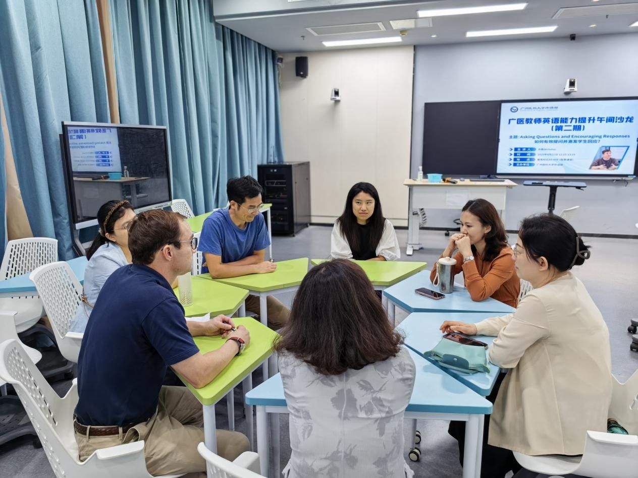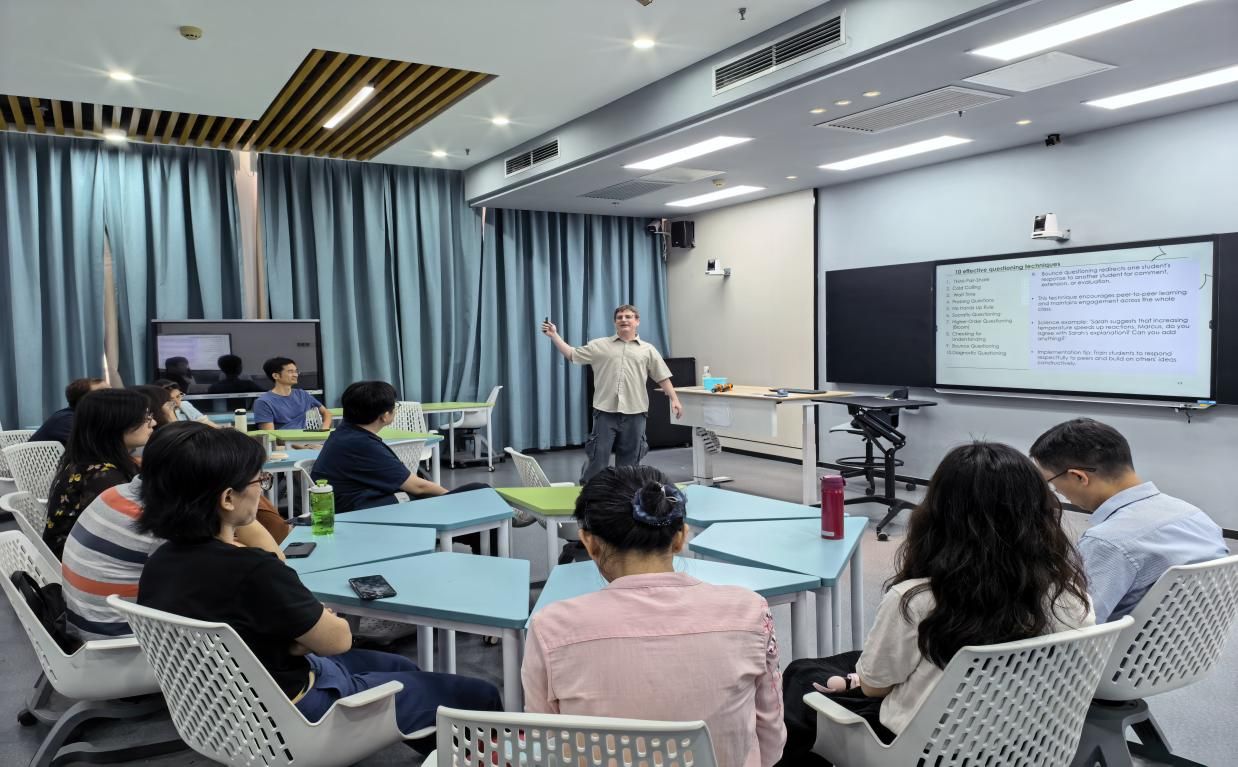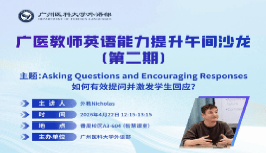 为助力教师提升英语教学能力、拓宽跨文化沟通视野,外语部于4月22日中午在A3教学楼604智慧教室顺利举办第二期教师英语能力提升午间沙龙。本次沙龙以“Asking Questions and Encouraging Responses”(如何有效提问并激发学生回应?)为主题,邀请外教Nicholas、Vincent莅临分享,各学院多名教师积极参与,现场交流氛围浓厚热烈。